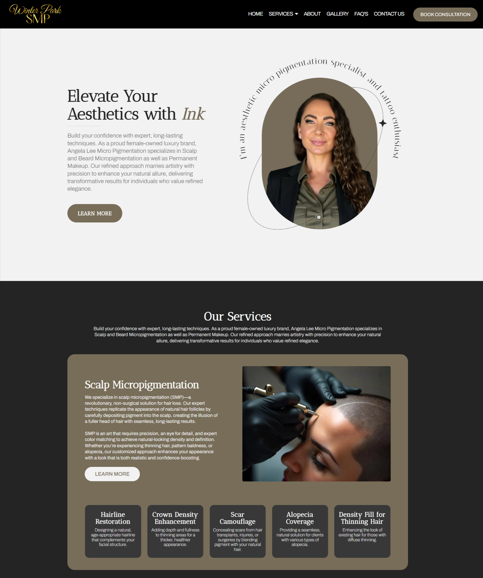 Angela Lee Micropigmentation is a luxury beauty studio in Maitland, Florida, specializing in scalp micropigmentation and permanent makeup.